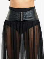 Cette ceinture en cuir souple et structuré est un accessoire qui définit la silhouette avec une élégance contemporaine. Sa large bande enveloppe la taille, créant une ligne marquée et sophistiquée. La boucle métallique, au design épuré, ajoute une touche de caractère et de modernité. Portée pour souligner la taille sur une robe fluide, ou structurer une jupe, ou encore apporter une touche finale à une tunique ample, elle rehausse l'allure avec une sophistication intemporelle et un impact visuel certain.