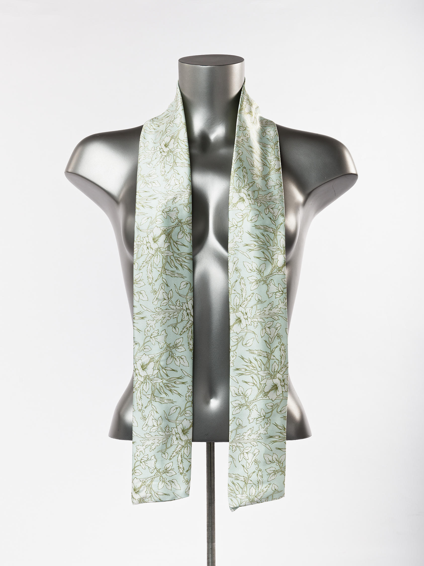 Ce foulard en soie fine séduit par sa légèreté et sa douceur au toucher. Polyvalent, il se porte aussi bien noué autour du cou, glissé dans les cheveux, en ceinture ou attaché à un sac. Un accessoire délicat pour rehausser chaque tenue d’une touche de raffinement.