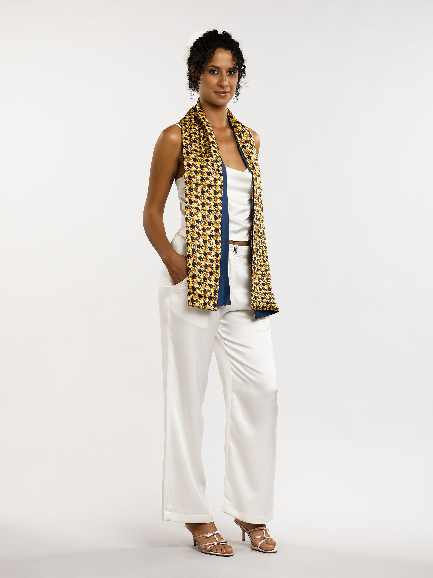 Ce foulard en soie fine séduit par la douceur de sa texture et la fluidité de son tombé. Son format classique invite à le porter autour du cou, ou délicatement drapé sur les épaules. Les coutures invisibles témoignent d’une confection soignée, pensée dans le respect du geste et de la matière. Léger et élégant, il apporte une touche de grâce discrète à chaque silhouette.