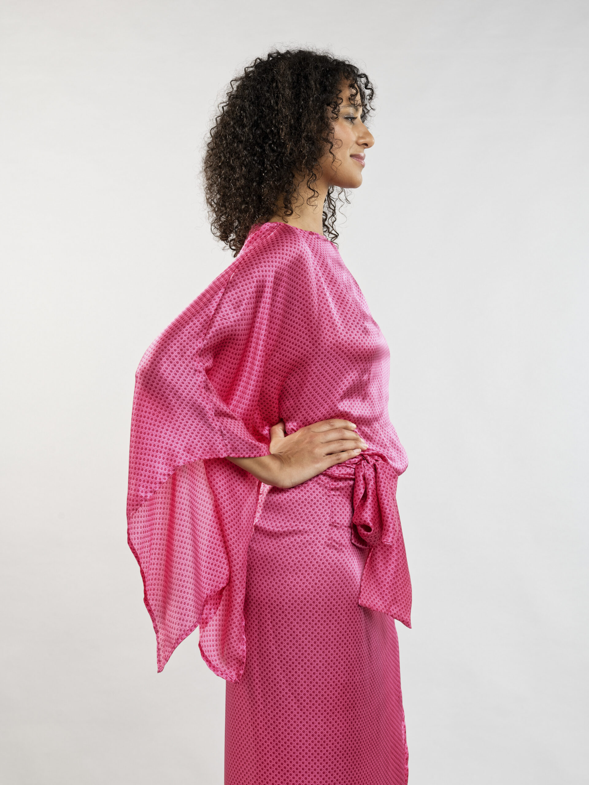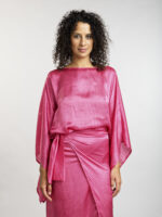 Inspirée du kimono, cette robe portefeuille en satin de soie séduit par sa silhouette fluide et son allure sophistiquée. Sa taille marquée par une ceinture nouée met en valeur les courbes, tandis que la fente sur la jambe apporte une touche sensuelle. Ses manches chauve-souris apportent une once de féminité. Une pièce forte, parfaite pour une soirée ou une occasion spéciale, où confort et audace se rencontrent.