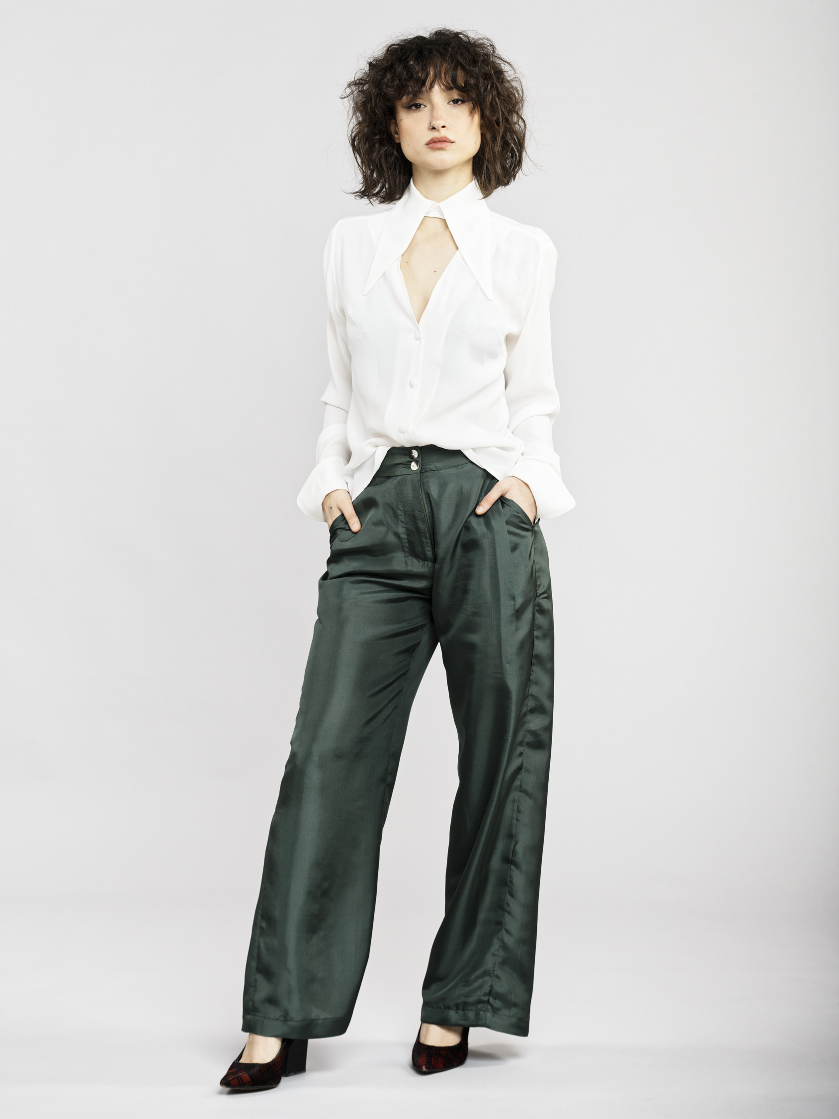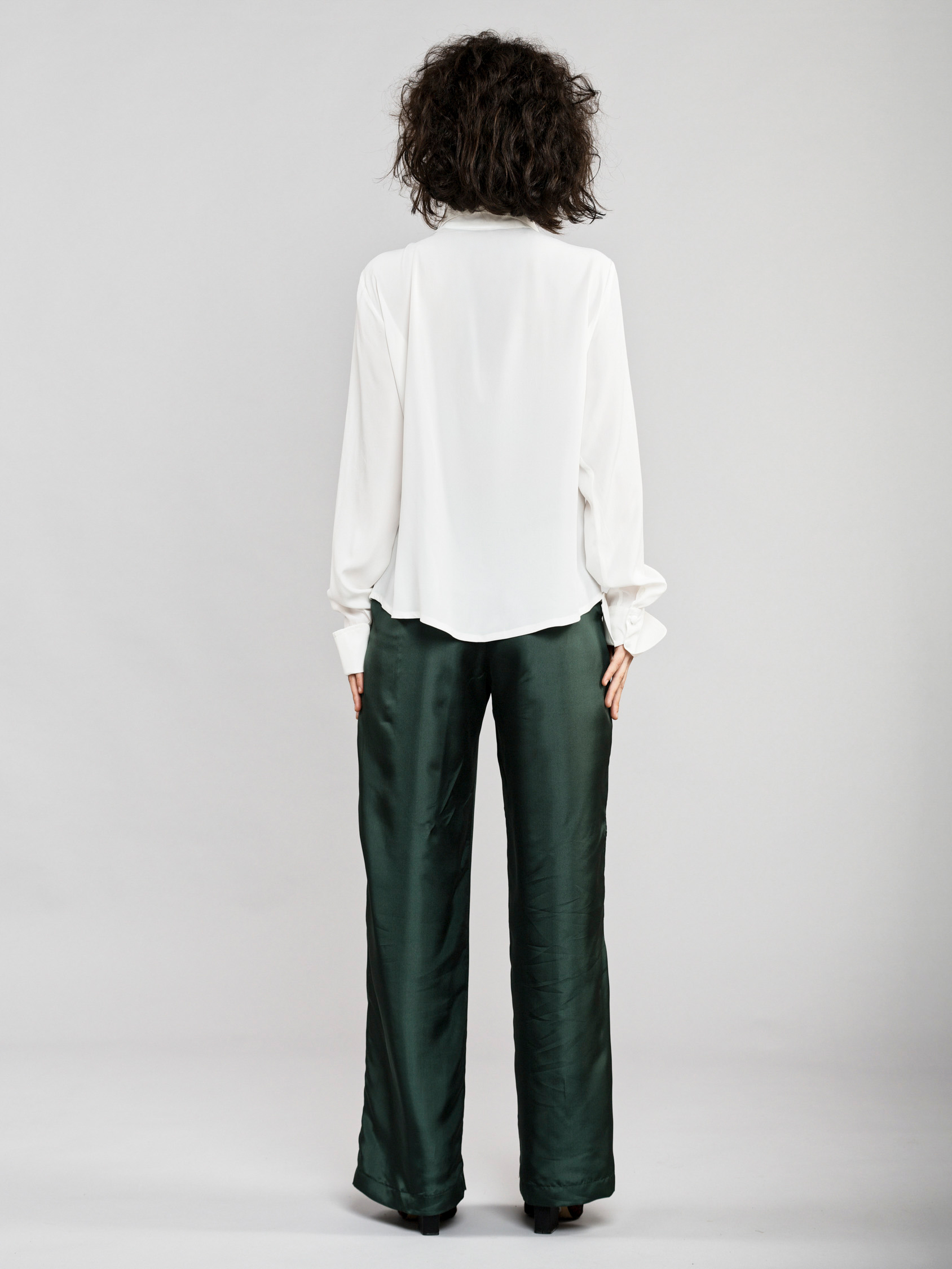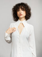 Ce chemisier se distingue par sa finesse et par une multitude de détails pensés pour révéler votre originalité. Son col pelle-à-tarte évoque avec grâce l’élégance vintage des icônes d’autrefois. Confectionnée en pongé de soie, cette pièce à la coupe unique et sophistiquée offre un confort exceptionnel et affirme une véritable personnalité.