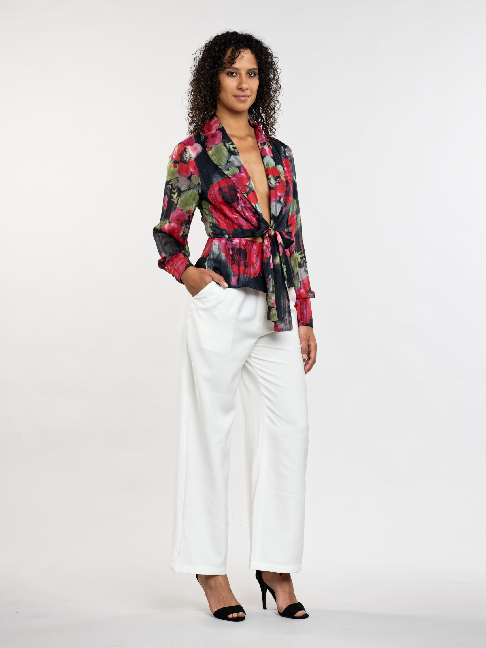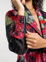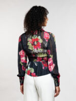 Soyez la plus élégante avec le chemisier Margaux. Confectionné en mousseline légère, il séduit par sa transparence subtile et ses motifs floraux évoquant un bouquet en mouvement. Margaux se distingue par ses détails raffinés, un col tailleur structuré, des boutonnières à 4 boutons inspirées d’un blazer et des rubans à nouer pour une fermeture délicatement déconstruite. Un chemisier pensé pour briller aussi bien en journée que lors de vos soirées.