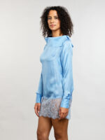 Confectionnée en mousseline de soie, la chemise Philomène capte la lumière et souligne le teint avec élégance, incarnant une féminité audacieuse et raffinée. Son col drapé asymétrique et ses finitions en dentelle au bas de la pièce, apportent une touche d’originalité et de subtilité. La fluidité de la soie glisse sur la peau, offrant une sensation de luxe et un confort absolu. Une pièce éclatante, idéale pour celles qui souhaitent affirmer leur style avec élégance. La chemise Philomène se marie parfaitement avec la jupe Rufine.