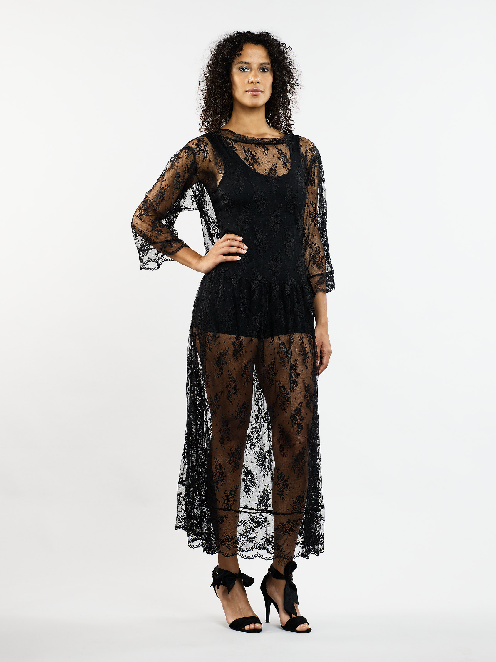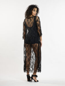 Féminine, sensuelle et pleine de caractère, cette robe longue en dentelle est une ode à l'élégance assumée. Le tissu apporte relief et raffinement, tandis que sa légèreté en fait une pièce idéale à porter en superposition, sur un maillot de bain, un body ou une lingerie fine. Alliée à une combinaison moulante vous permettant de rester couverte tout en gardant l’effet bohème chic et glamour donner par la dentelle.