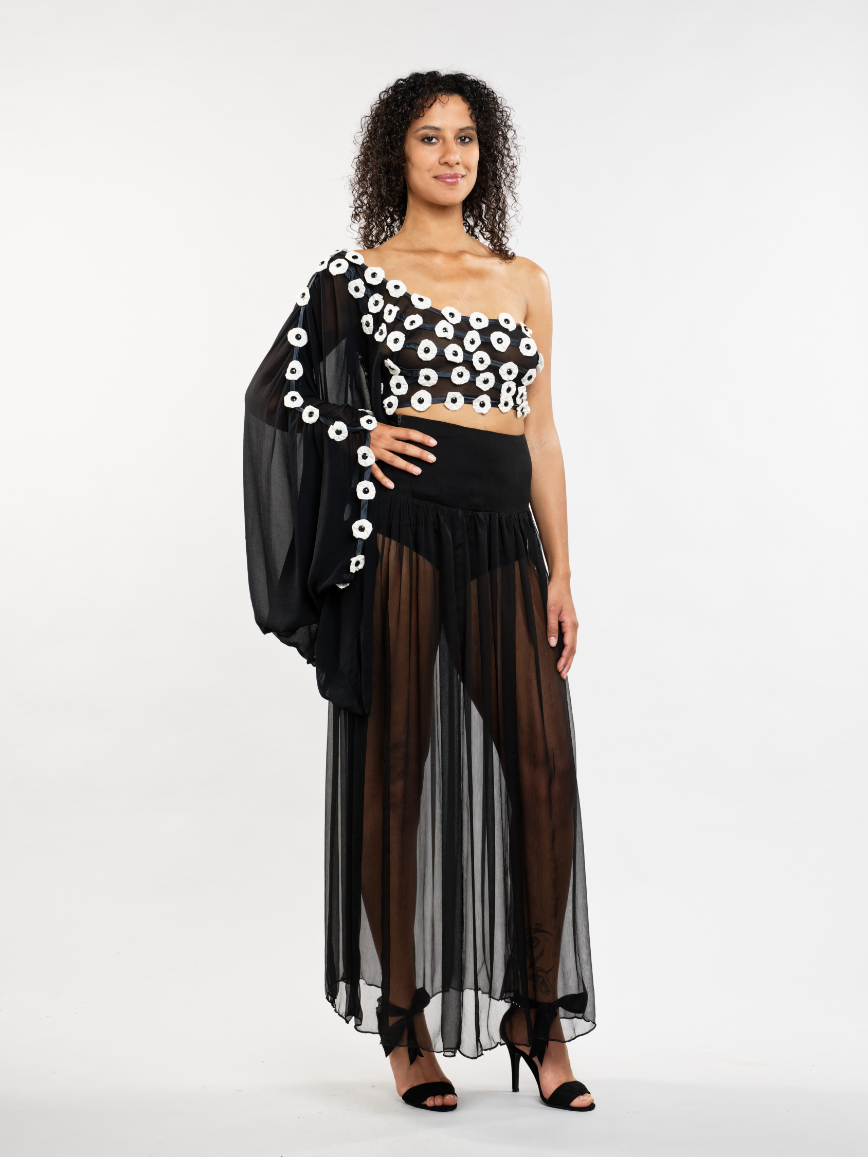 Composition : 100 % mousseline de soie et fleurs en mousseline de soie