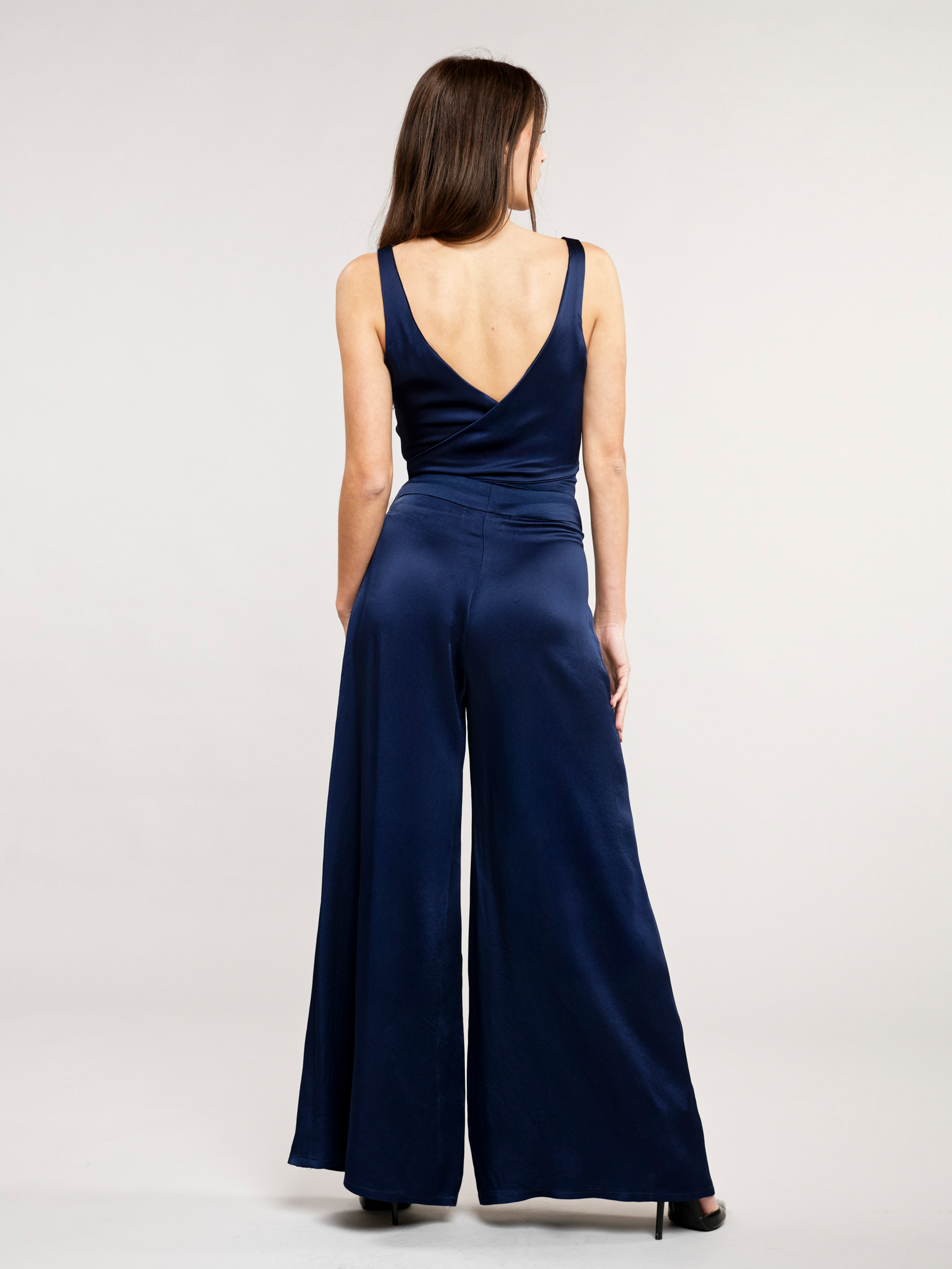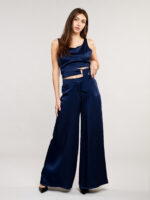 Cet ensemble est la définition de chic et confortable. Le haut en soie se cintre grâce à un anneau qui vous permet de l’ajuster à votre taille. Sur le dos, on retrouve une échancrure plongeante pour un côté subtile et poétique. Le pantalon fluide en soie vous offrira tout le confort nécessaire, ainsi que la sensualité que vous désirez grâce à une coupe fluide qui dessinera parfaitement vos courbes. Ces deux pièces peuvent également être portées séparément vous offrant une grande liberté dans votre style.