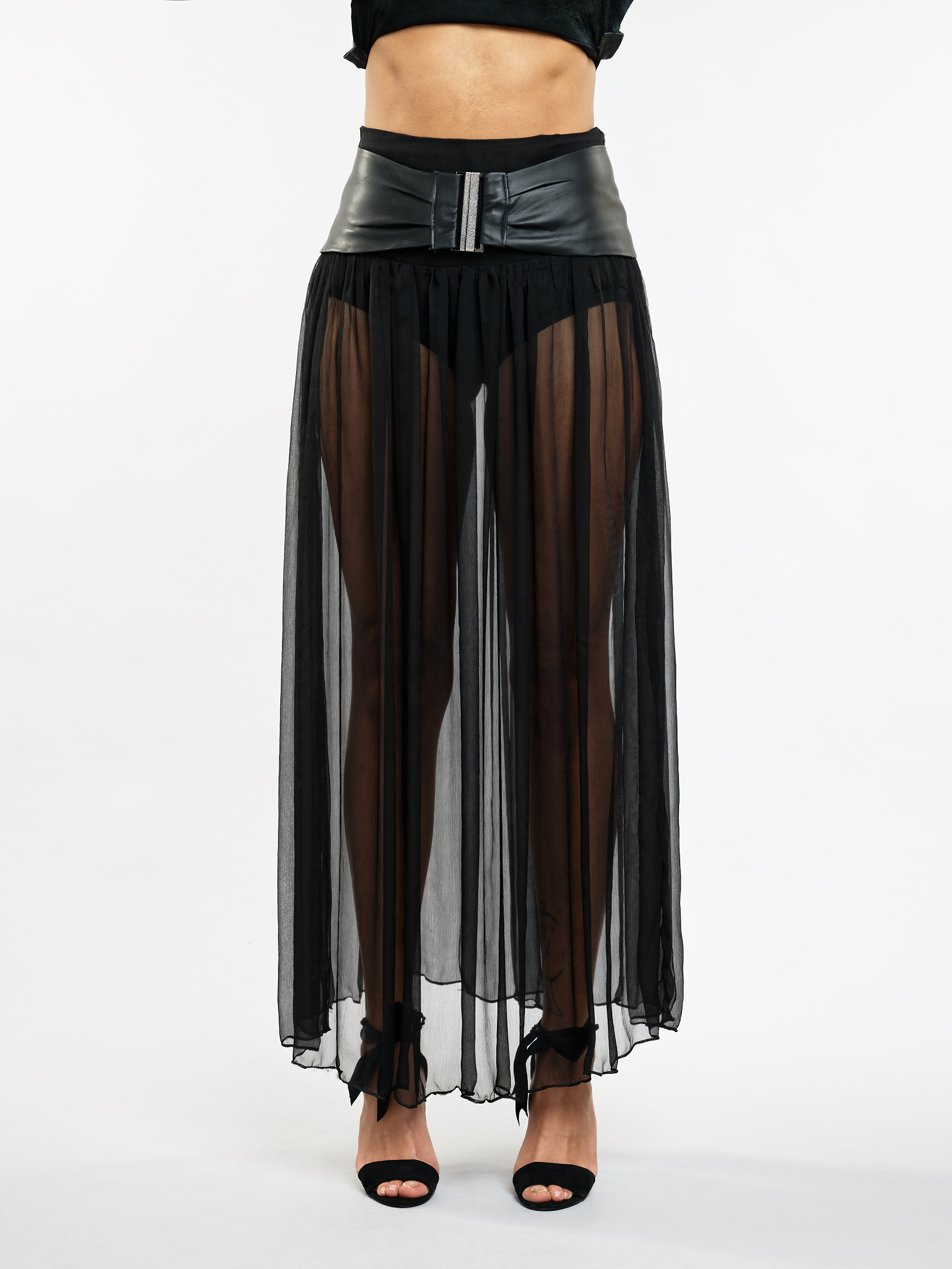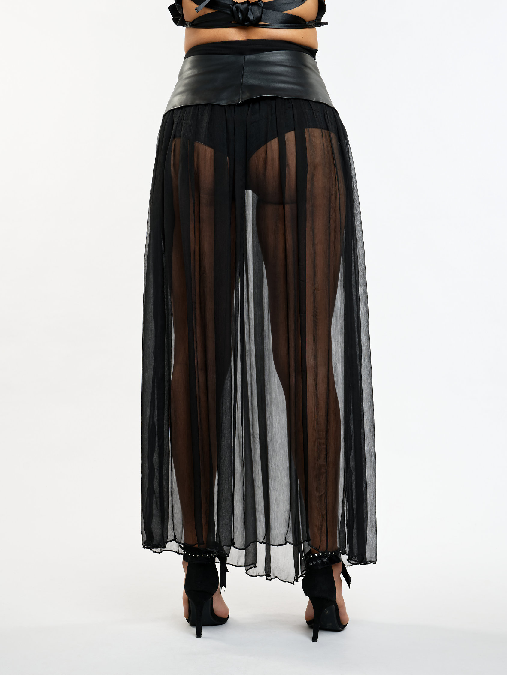Jupe longue transparente en mousseline de soie
