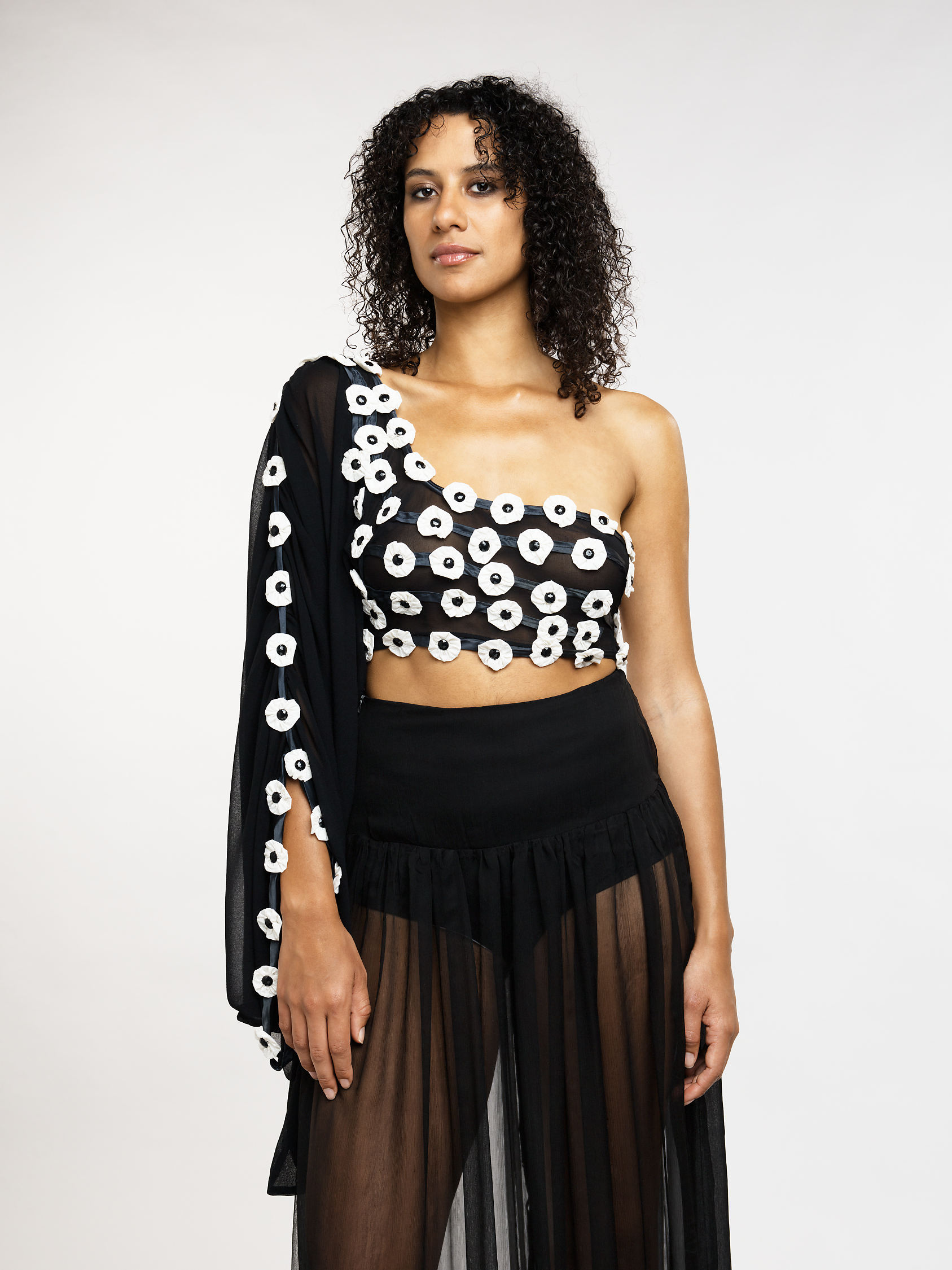 Laissez-vous envoûter par la légèreté de cette jupe en mousseline de soie. Son voile délicat, subtilement transparent, caresse la silhouette et crée un mouvement fluide et gracieux à chaque pas. Portée avec élégance, elle promet une allure mystérieuse et sophistiquée.