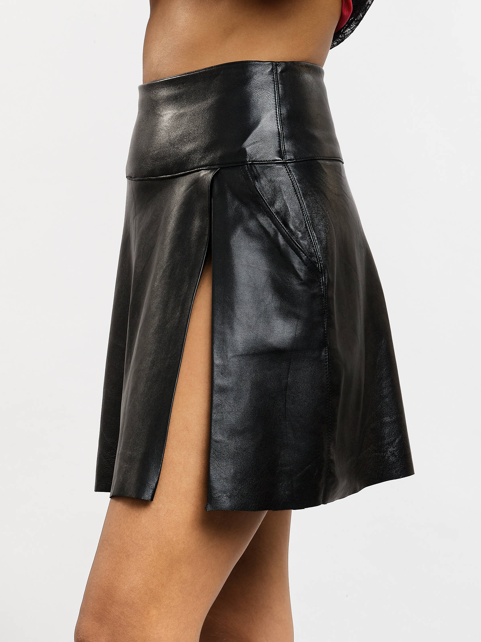 Jupe courte fendue en cuir