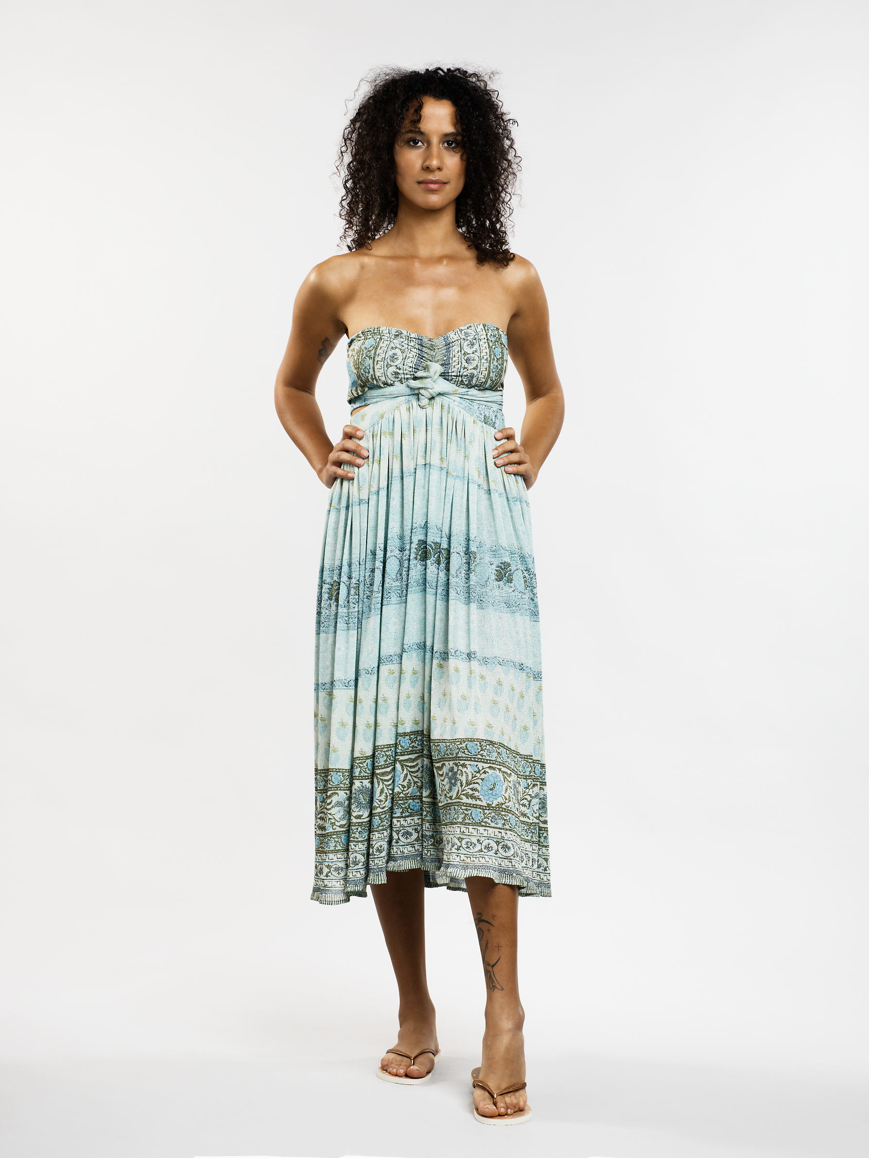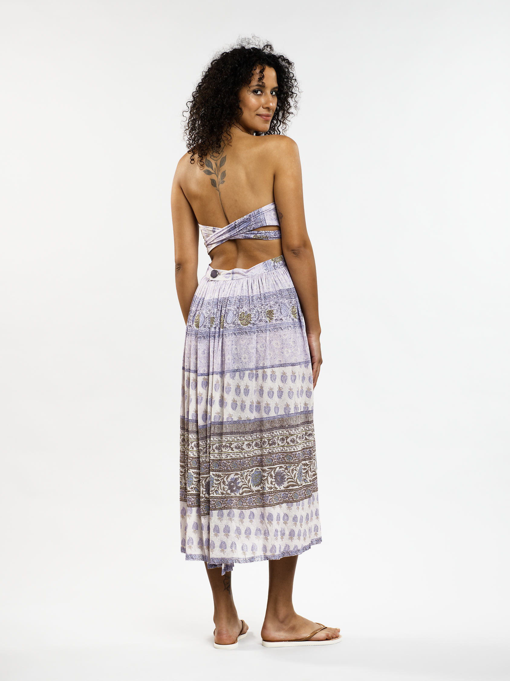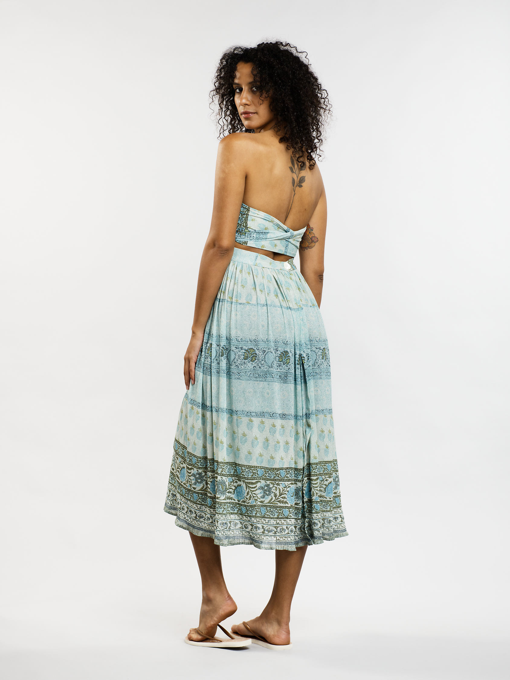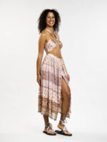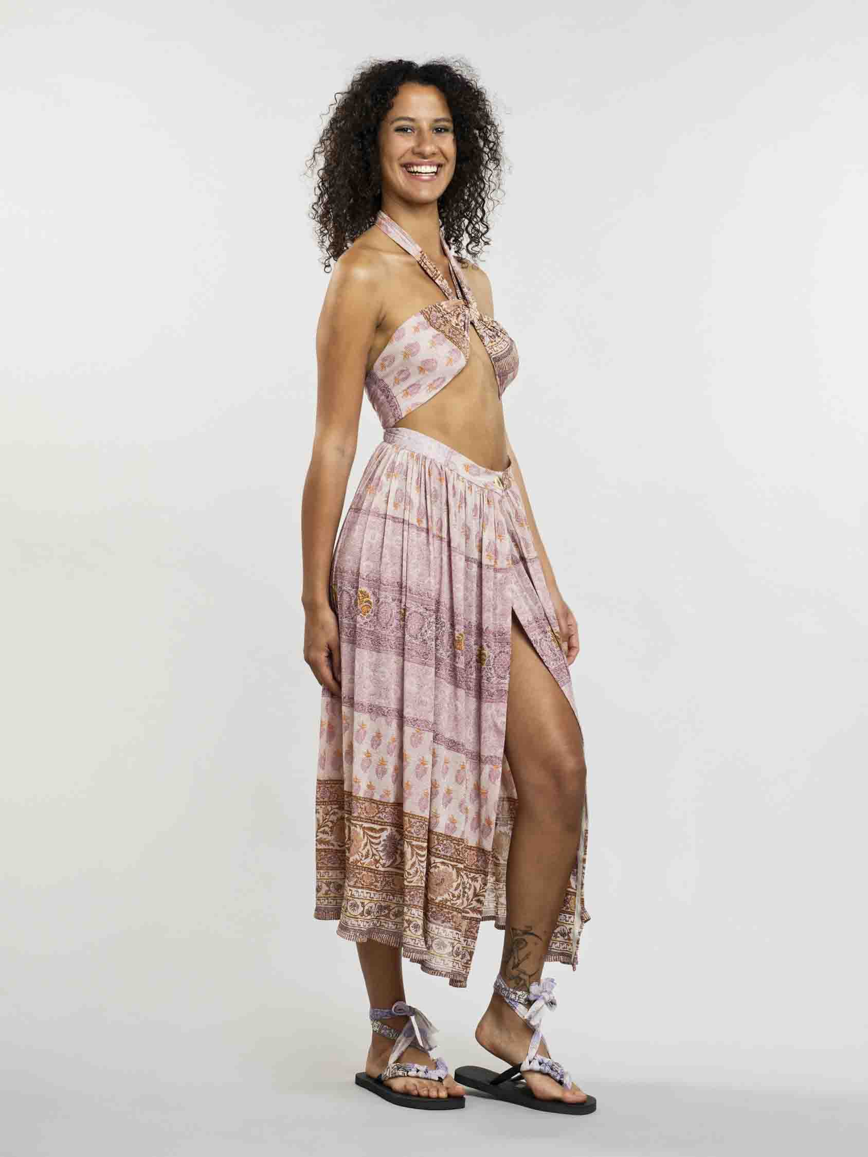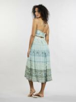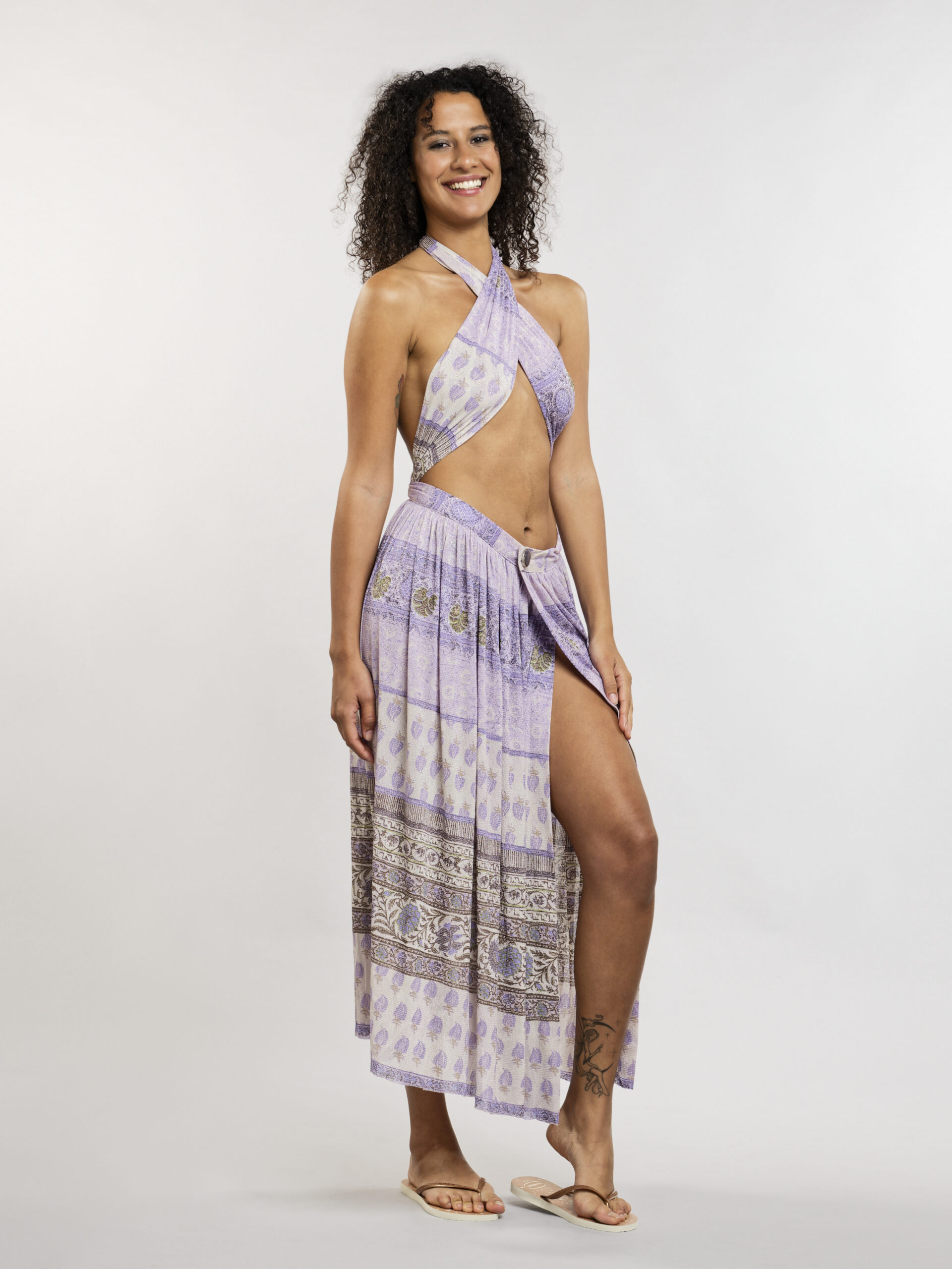 Des millions de façons de la nouer, cette robe marque son originalité de part sa conception qui permet de la transformer selon vos envies et vos désirs. Se portant tant en jupe et comme une robe, après la plage ou pour une soirée, elle s’adapte à tout le monde. Parfaite pour l’été, avec son tissu en résille aussi confortable que joli qui prend des tons irisés selon la lumière du jour.