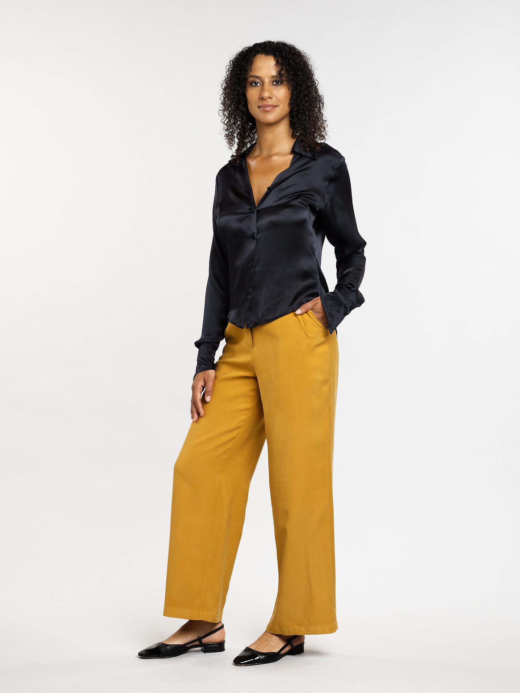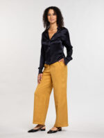 Ce pantalon à la coupe simple, est une pièce capsule qui se mariera avec beaucoup de vêtements de votre garde-robe. De part sa simplicité et sa qualité, elle est intemporelle et convient à tous les styles. Par exemple si vous souhaitez casser le style avec un top décalé ou tout simplement rester dans cet univers à la fois chic, décontracté et élégant.