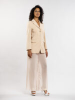 Aussi légère que poétique, cette pièce offre la sensation d’une caresse sur la peau, tout en jouant avec la transparence. Elle laisse subtilement entrevoir les jambes tout en les voilant avec délicatesse. Sa matière aérienne procure une sensation de liberté absolue, idéale pour la saison estivale.