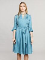 Ceinturée à la taille pour mettre en valeur la silhouette et accentuer votre féminité, cette joli robe à l’allure d’antan rappelle les années 50. Elle joue sur l’élégance en vous plongeant dans l’esprit glamour de l’époque. Confectionnée dans un tissu fluide et confortable, elle se porte aussi bien au quotidien qu’en occasion spéciale. Une pièce iconique qui allie nostalgie et modernité.