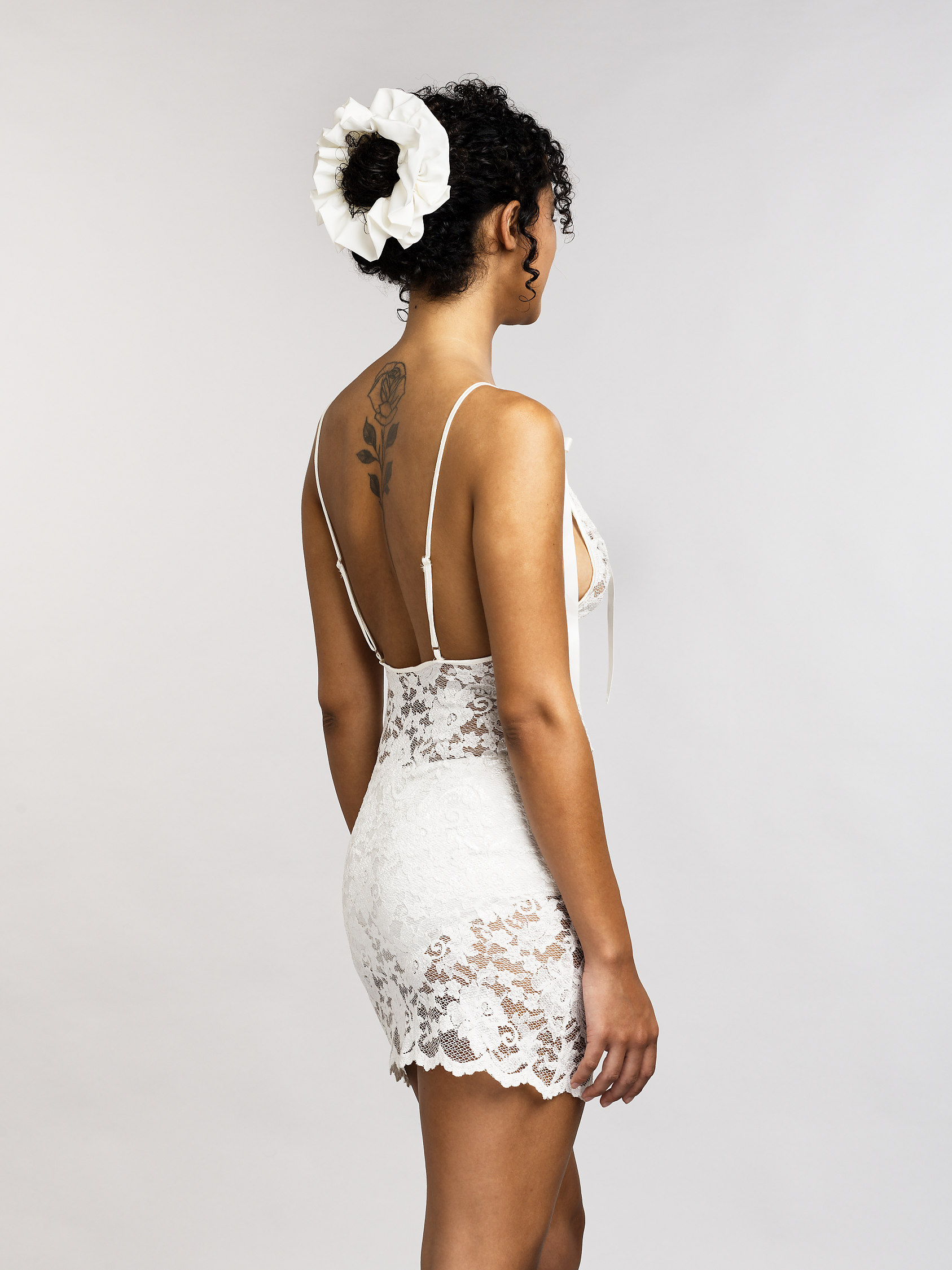 - Deux petits nœuds ornent les bretelles