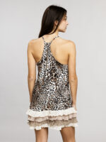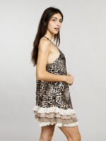 Cette nuisette se démarque grâce à sa coupe simple et agrémentée de volants sur le bas, elle permet ainsi de s’adapter autant à vos douces nuits qu’à vos sorties les plus festives, vous offrant la liberté de vous exprimer à travers votre style vestimentaire. Sa coupe courte garantit à votre silhouette une allure inégalable en découvrant vos jambes. Le confort et la qualité sont ici assurés par le tissu épais qui en fait un vêtement d’une qualité exceptionnelle.