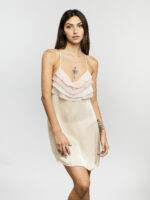 Composition : 100 % pongée de soie et volants en mousseline plissée