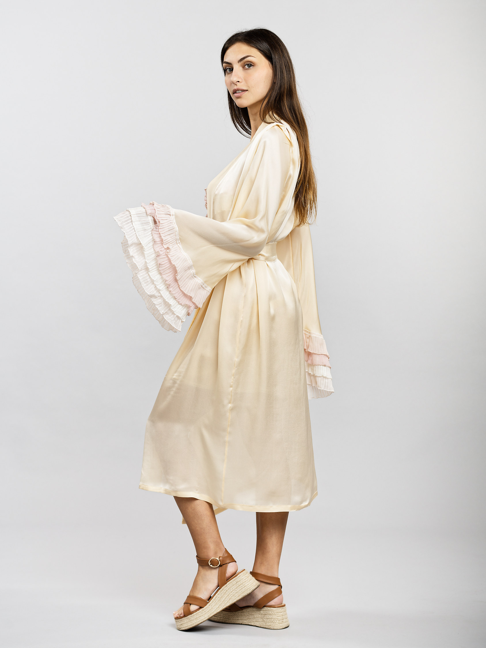 - Volants en mousseline plissée aux bout des manches dans des nuances de rose