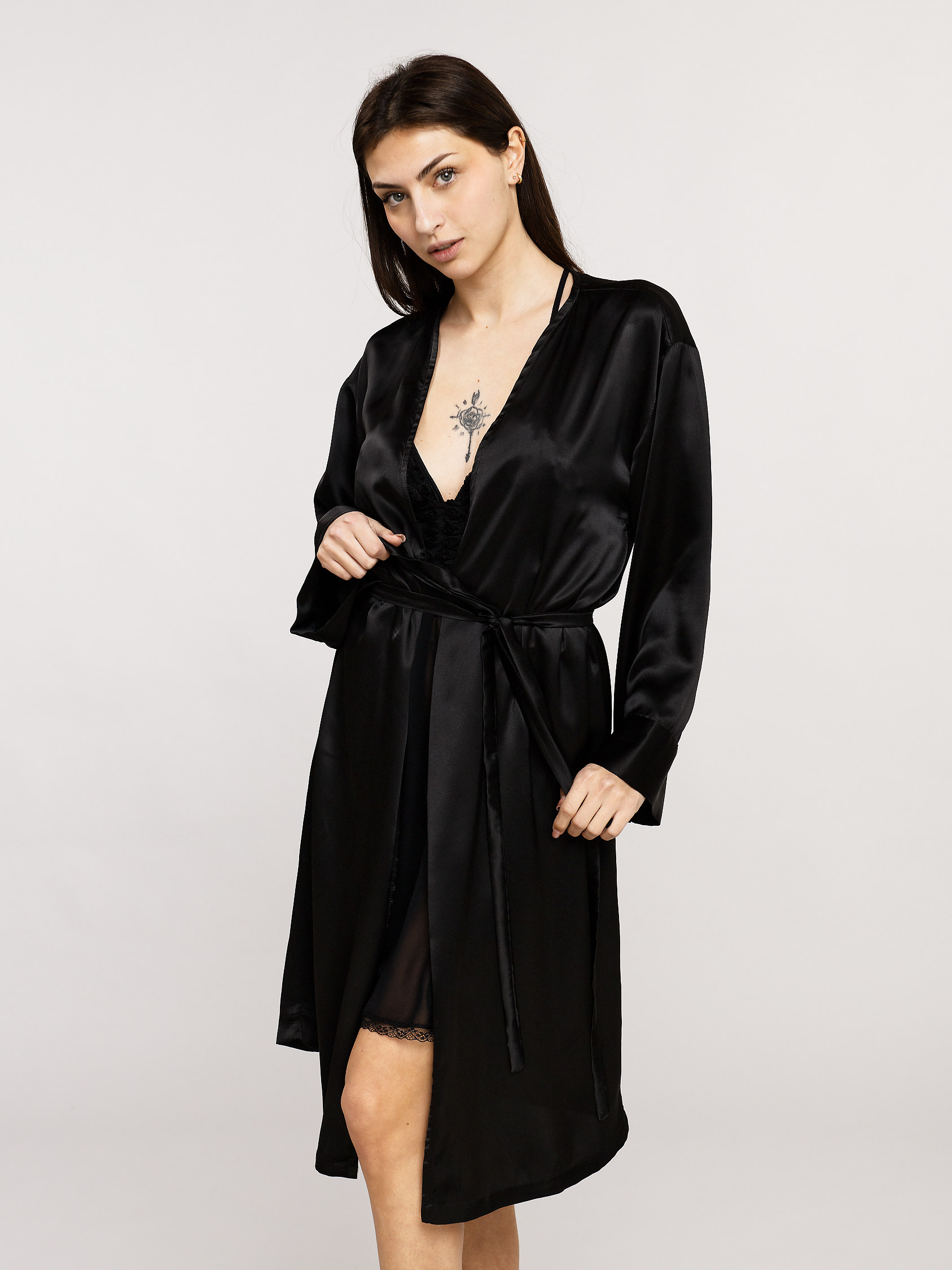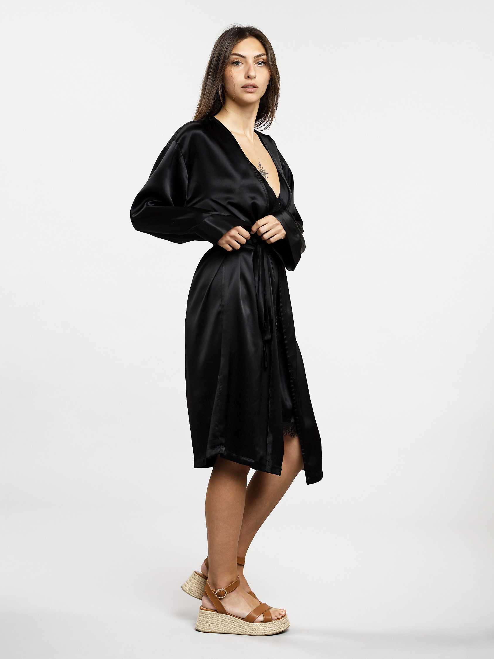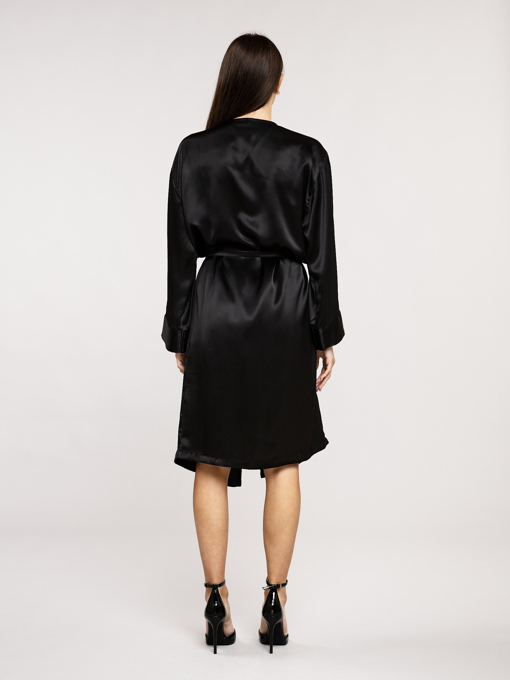 Robe de chambre mi-longue en satin de soie