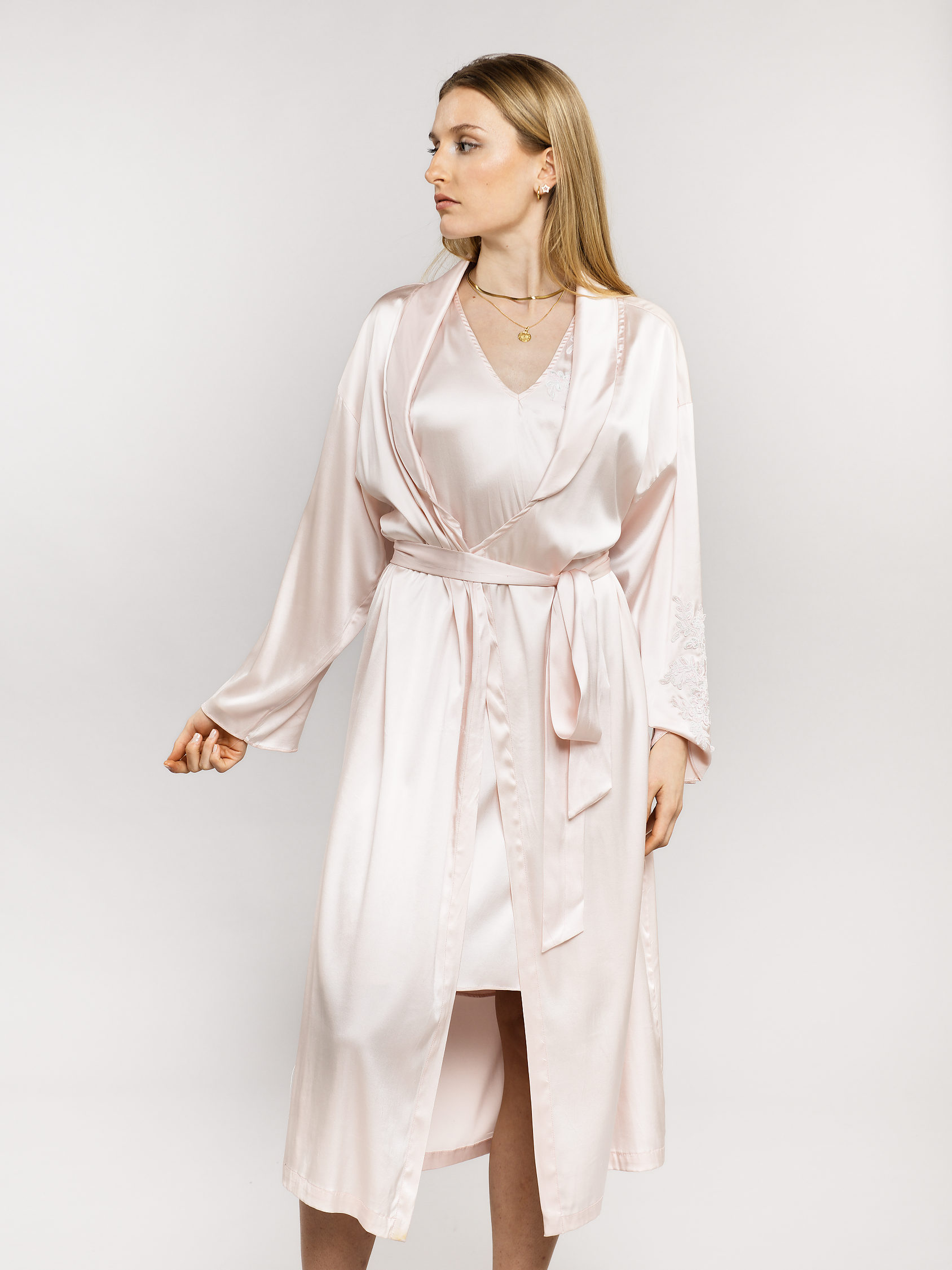 La robe de chambre Jocelyne célèbre la délicatesse de la soie dans une teinte subtile. Sa coupe épurée enveloppe la silhouette avec légèreté, offrant la sensation d’une seconde peau. Élégante et intemporelle, elle s’accorde naturellement à toutes vos lingeries.