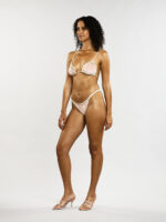 Ce maillot de bain en suédine douce, délicatement bordé de crochet en coton élastique, offre une sensation de confort naturel et une esthétique inspiré de la préhistoire. Sa coupe met en valeur la silhouette avec subtilité, tandis que les détails crocheté apportent une touche artisanale et chaleureuse.