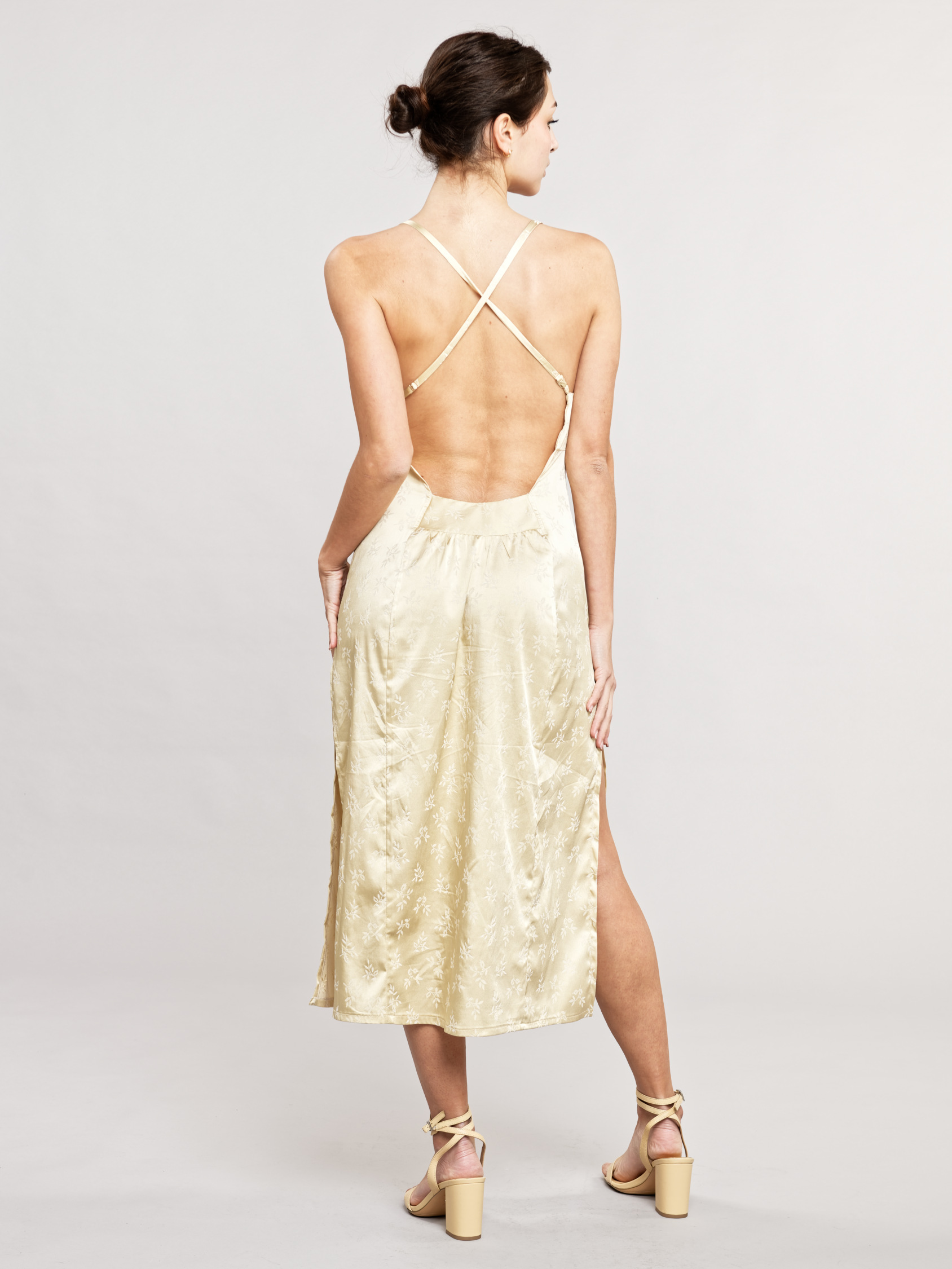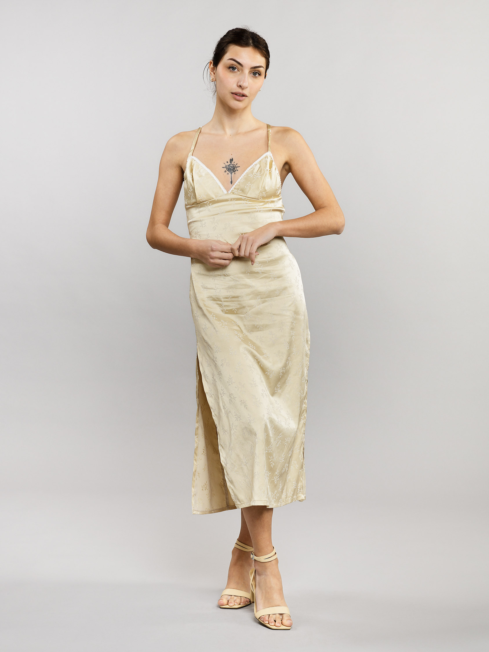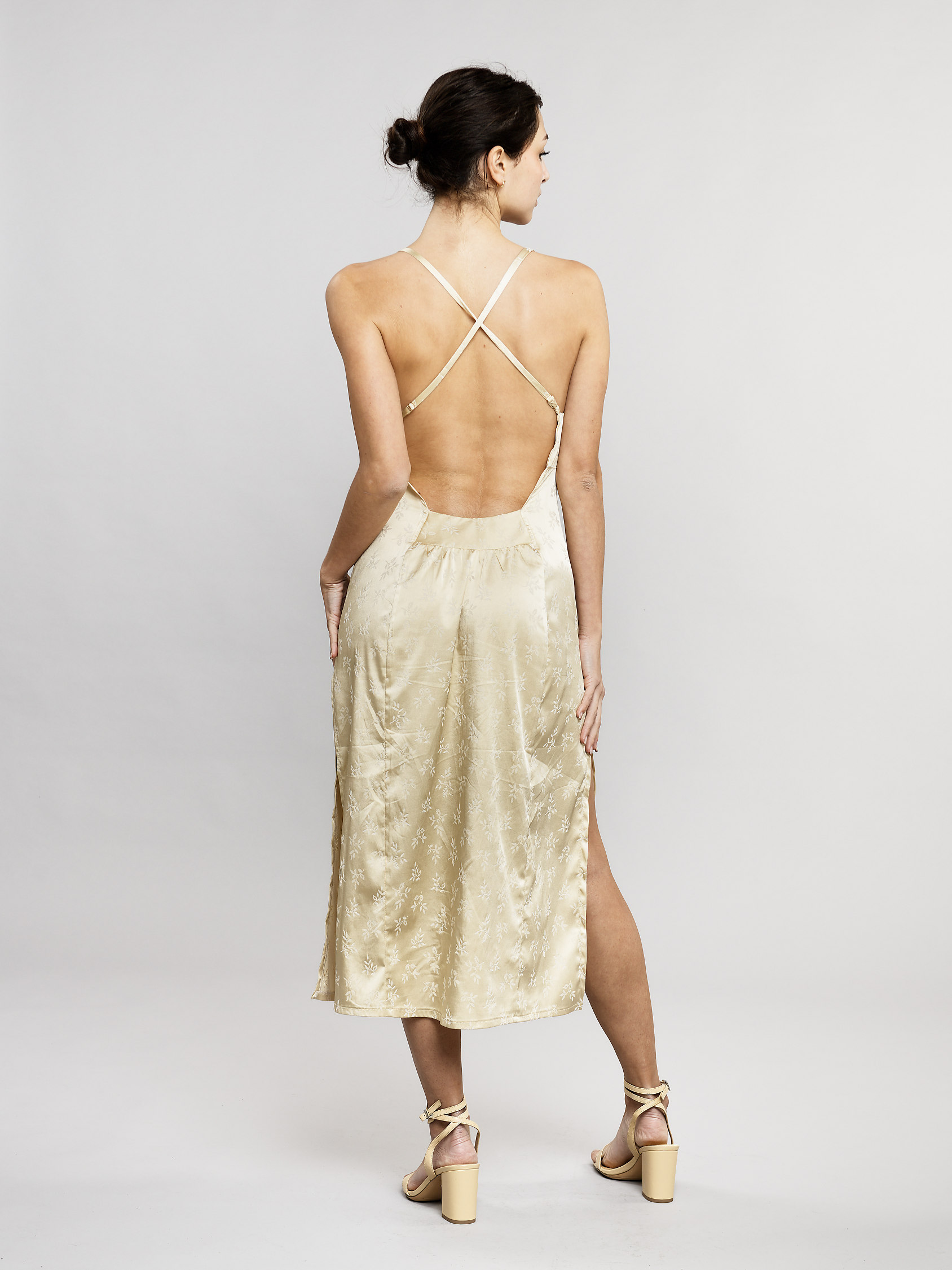 Un magnifique dos nu dans lequel s'entremêlent des bretelles croisées, offrent à votre silhouette une sensualité inégalable.
