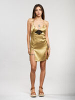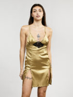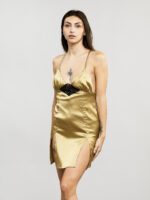 Succombez à la douceur et à l’élégance de cette nuisette courte en soie naturelle et élasthanne. Son décolleté en V est orné d’un losange de dentelle délicate ainsi que le dos, pour une touche raffinée. Ses bretelles fines et réglables épousent parfaitement la silhouette, tandis que les deux fentes latérales offrent confort et allure séduisante. Une nuisette en soie idéale pour sublimer vos nuits avec légèreté et féminité.