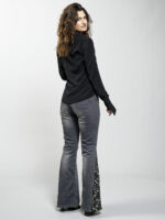 Ajoutez une touche d'audace et de féminité à votre look avec ce jean évasé unique. Confectionné dans un denim gris effet délavé, il se distingue par ses empiècements en dentelle noire délicatement intégrés aux jambes et autour de la taille, pour un contraste élégant et original. Sa coupe flatteuse allonge la silhouette, tandis que les détails travaillés apportent une vraie personnalité à votre tenue. Parfait pour une allure chic et rock à la fois !