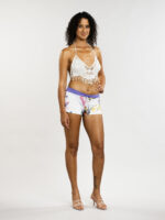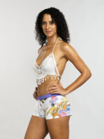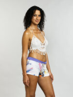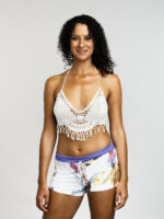 Ce top en crochet évoque une douce brise marine. Sa texture ajourée et ses détails de coquillages délicats apportent une touche bohème et raffinée. La coupe met en valeur le décolleté avec une subtile sensualité. Parfait pour les grosses chaleurs, il insuffle une élégance décontractée et un esprit estival.